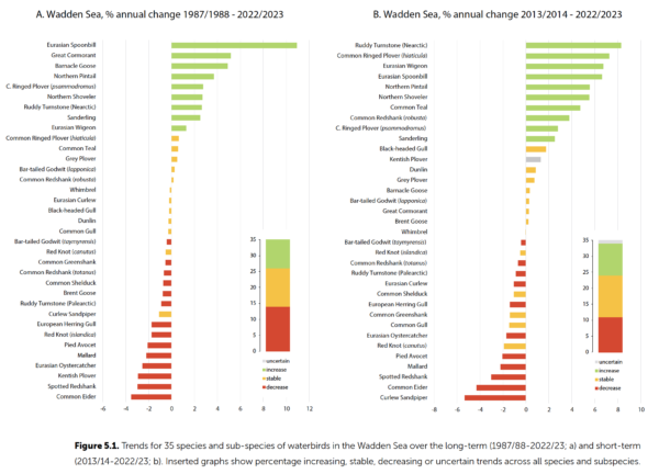 . The assessment delivers a nuanced message. Over the long term, many populations have shown resilience, with around 42% increasing. Yet this positive picture is increasingly overshadowed by more recent developments. Short-term trends are deteriorating, and more than a third of populations are now in decline. Particularly worrying are the shorebirds that breed in the Arctic and winter in Africa, which appear to be under mounting pressure across multiple stages of their life cycle.